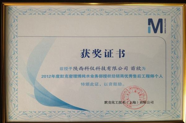 恭喜我公司苗欣榮獲2012年度默克密理博純水業(yè)務(wù)部授權(quán)經(jīng)銷商優(yōu)秀售后工程師個(gè)人證書(shū): 苗工目前已經(jīng)有14年以上的相關(guān)工作經(jīng)驗(yàn),加入科儀公司以來(lái) ,一直從事精密儀器的安裝,調(diào)試,客戶培訓(xùn),維修等工作 ,具體技能有:(1)HPLC、UPLC使用及安裝維修,獲得Waters公司高級(jí)工程師資格;(2)M... [查看詳情]